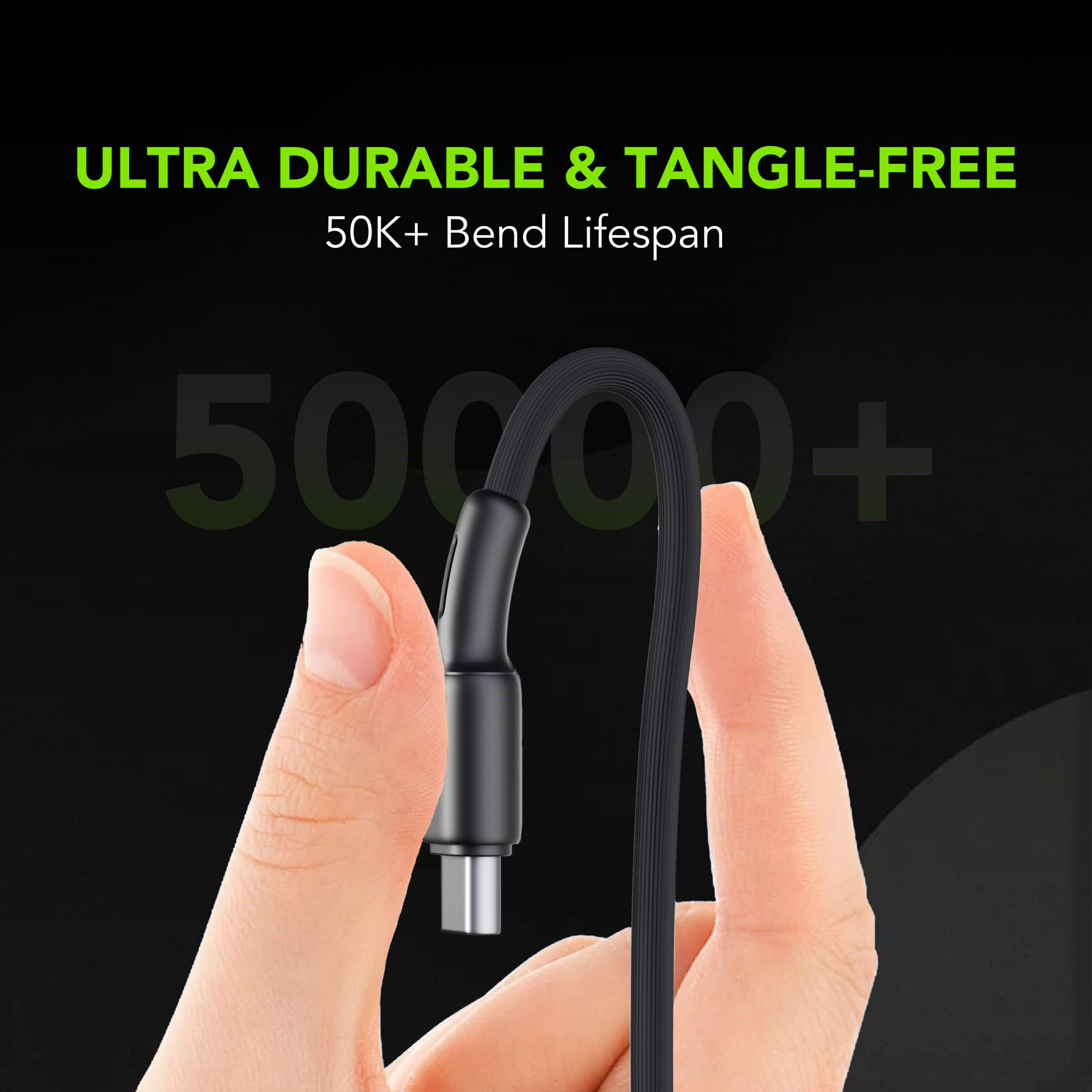 Yes, it's tangle-free and has been tested for 10,000 bends and plug/unplug cycles.