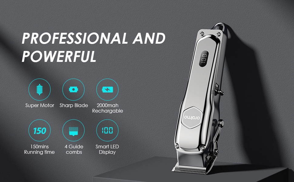 The Oraimo SmartClipper 2 is a powerful cordless hair clipper and trimmer designed for professional-grade grooming at home or on the go. It features a strong motor and precision stainless-steel blades that deliver smooth, efficient cutting across different hair types. With a long-lasting rechargeable battery offering up to ~150 minutes of runtime, this device eliminates frequent charging interruptions. Its LED smart display keeps you informed about battery status at a glance, while multiple guide combs and adjustable settings let you customize your trims with ease. Built with ergonomic design and durable materials, this clipper combines convenience, performance, and versatility ideal for beard, hair, and body grooming.