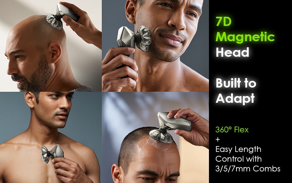 At its core is a 7D magnetic floating shaver head, engineered to adapt to every curve of your scalp and face. It’s perfect for those who love a bald look. The close-contact blades glide smoothly, minimizing irritation while delivering a clean, precise finish.