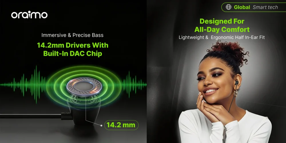 The Oraimo in-Ear Wired Earphones are compatible with devices that have a Type-C connector.