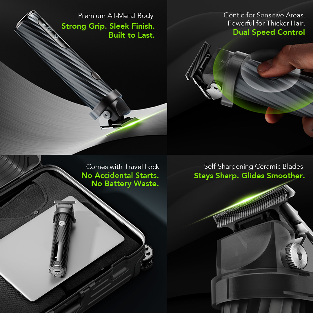 Yes! It includes a smart travel lock to prevent accidental power-ons in your bag, and a handy LED display shows battery percentage. The motor runs at a smooth 7700 RPM ±5%, delivering steady performance.